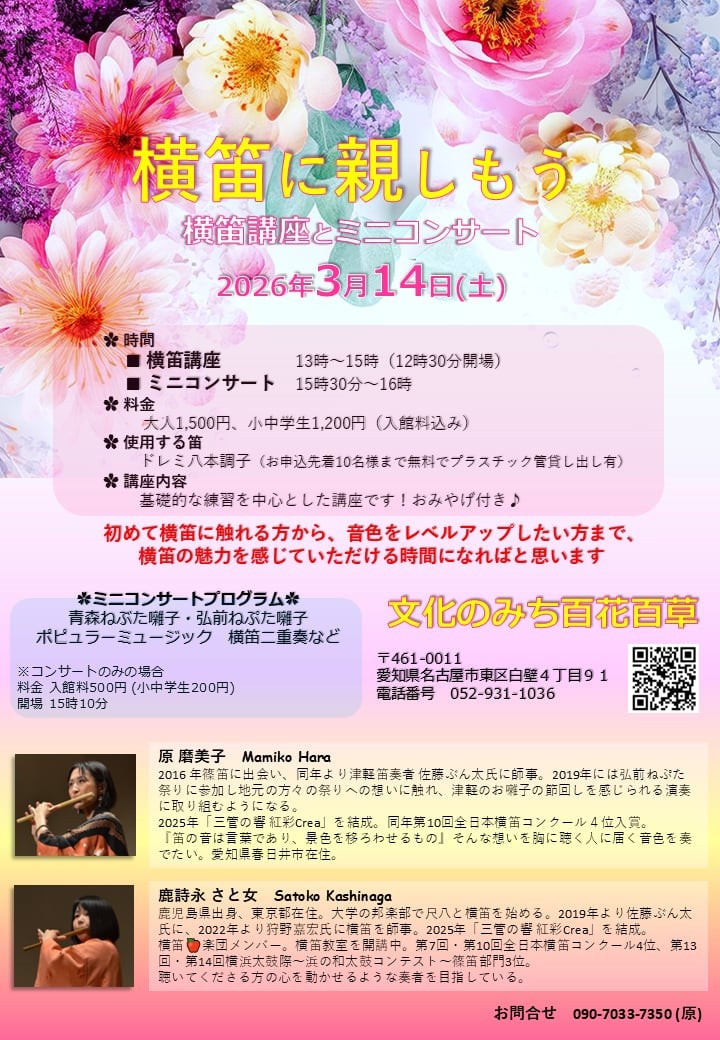 料 金 講座&ミニコンサート 大人1,500円 小中学生1,200円